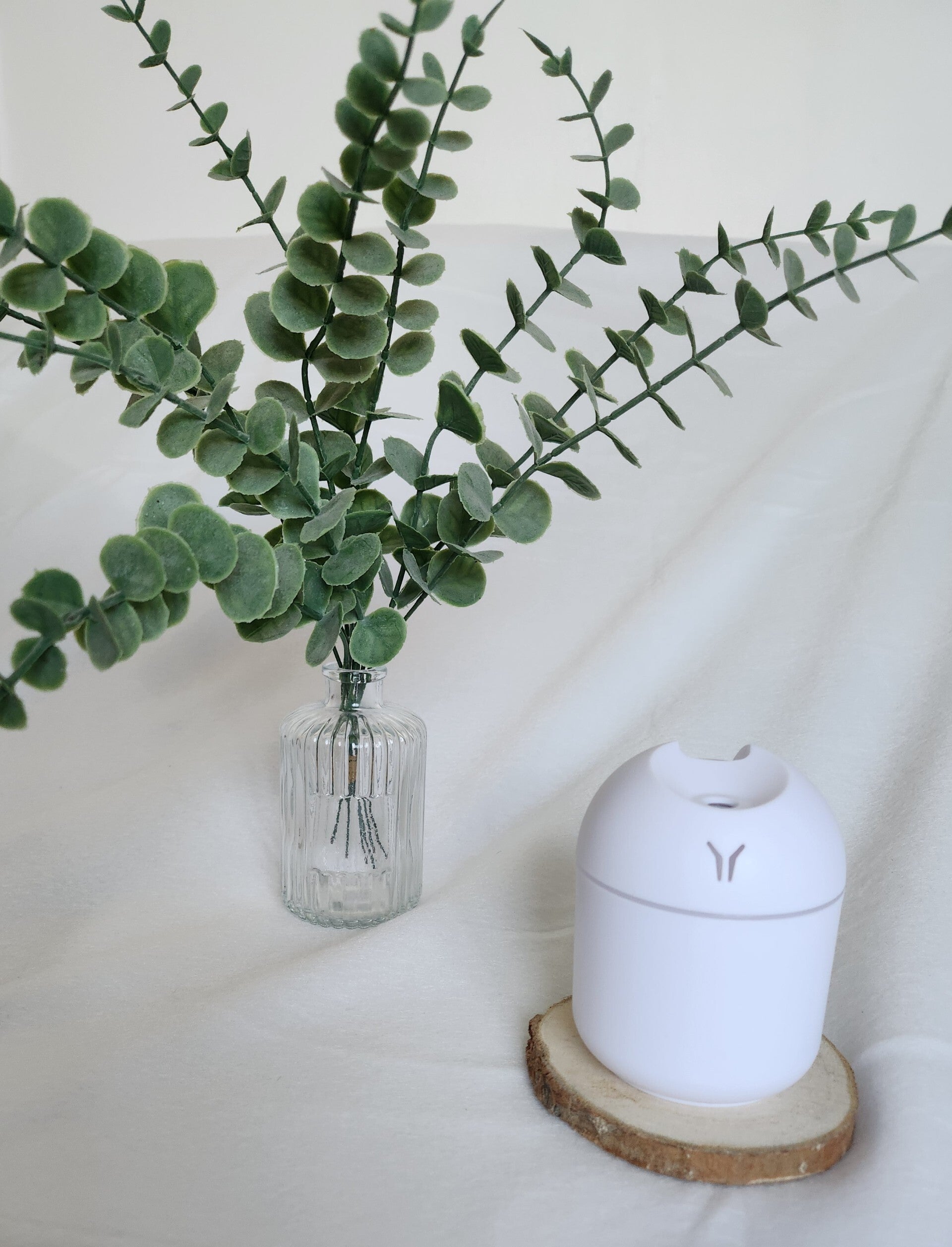 Mini diffuseur/humidificateur blanc. Branchement USB.